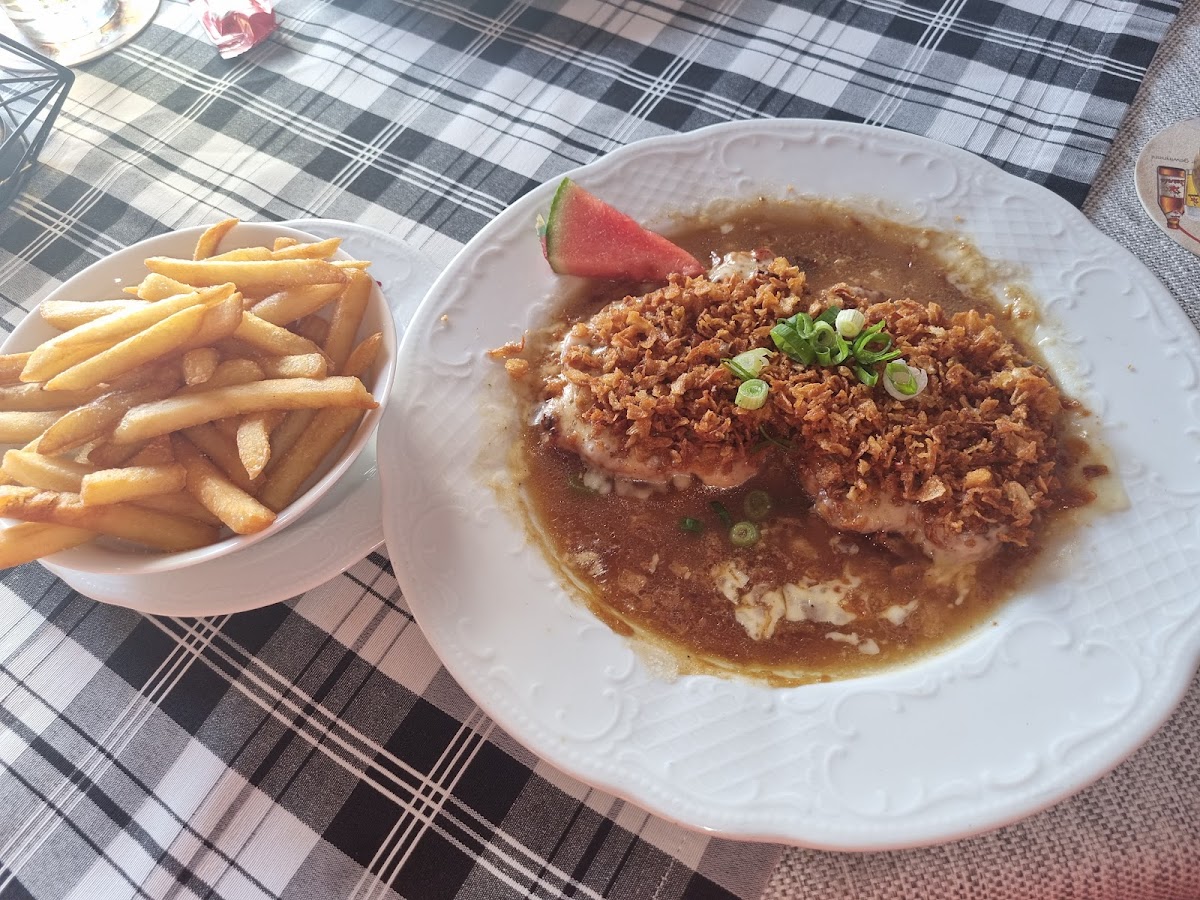On the menu, classic dishes such as Cordon Bleu, various steak options including Steak mit Röstzwiebel Überbacken and Schaschliksteak, alongside seasonal specialties like Bärlauchnudeln, give a solid sense of Bavarian culinary staples. Portions tend to be generous, and prices remain reasonable, which together support the feeling of an honest, satisfying dinner rather than a polished gastronomic outing.